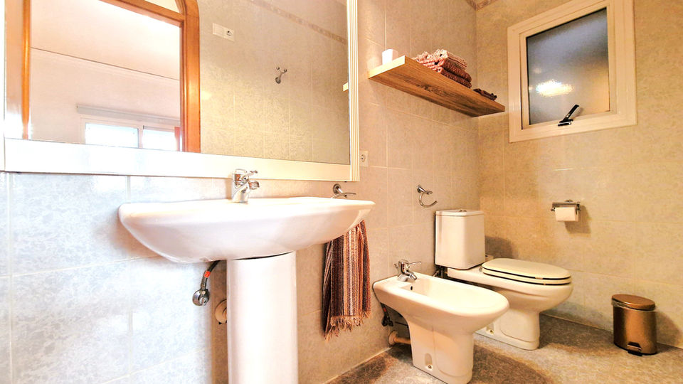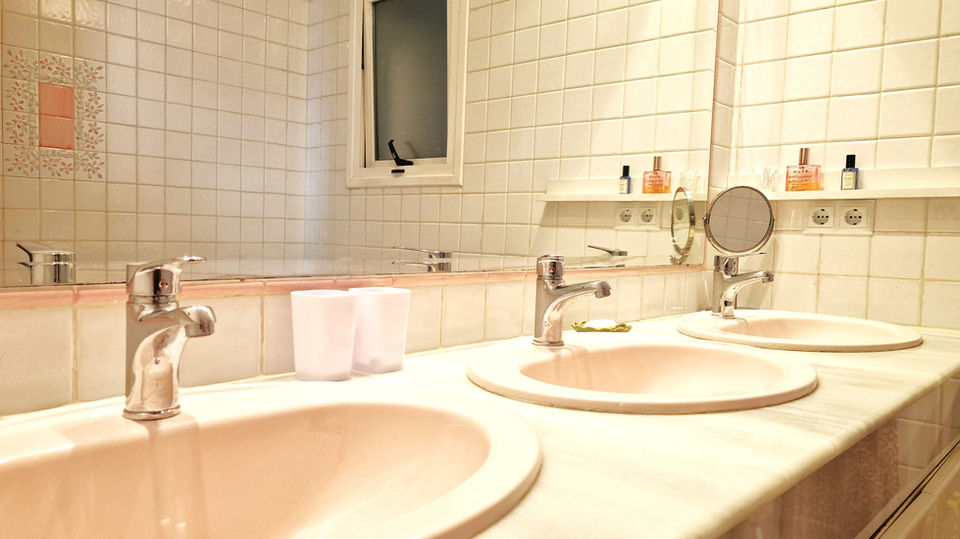 The apartment has five bathrooms equipped with bath/shower, toilet and sink.